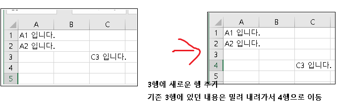 #3행에 새로운 행 생성. 기존에 3행에 있던건 4행으로 밀려내려감