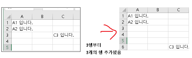 #3행에 새로운 행 생성. 기존에 3행에 있던건 3칸 내려가서 6행으로 밀려내려감