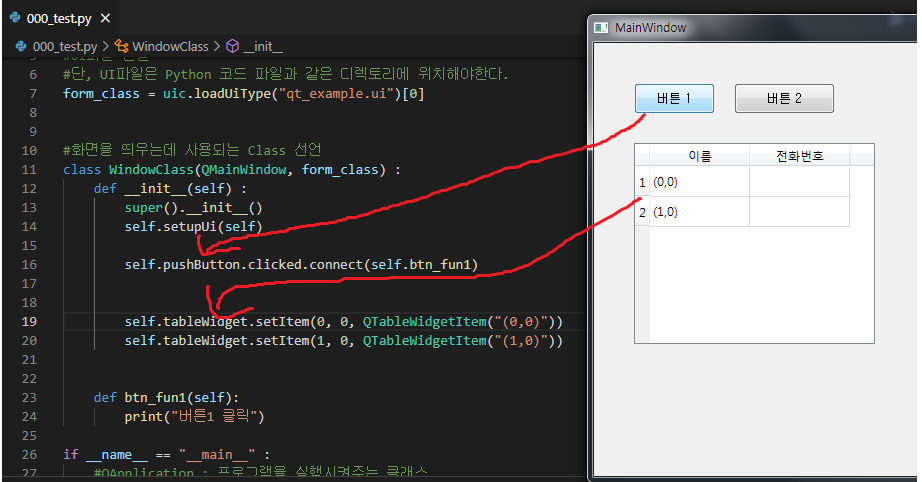 app.exec_()3. Qt Designer에서 만든 각종 Widget들을 소스코드에서 사용하는 방법
