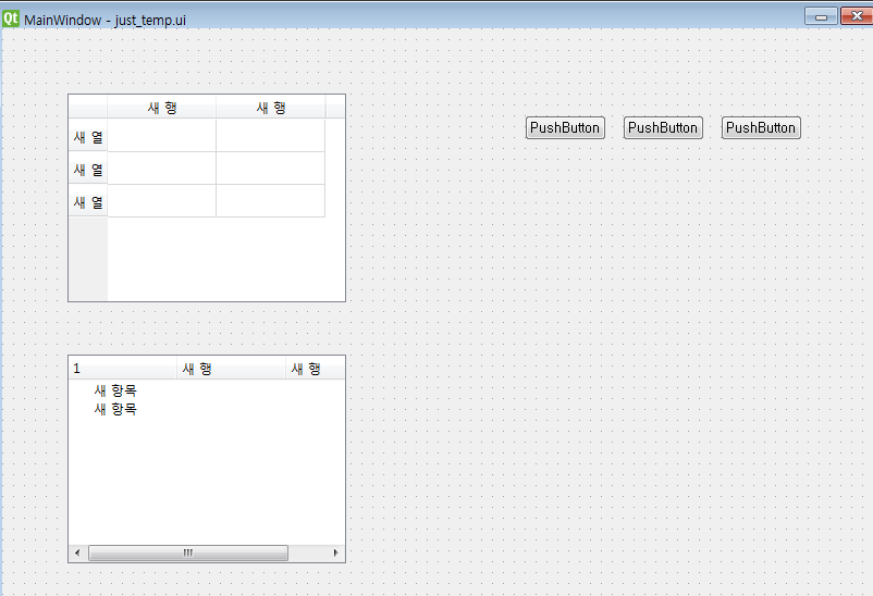 이렇게 QT Designer로 just_temp.ui 라고 UI파일을 만들어서 저장해둔 다음