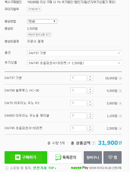 위 사진을 기준으로 도합 7800원이 필요하다.(배송료 별도)