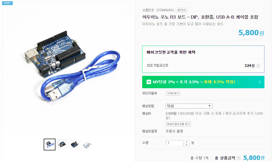 네이버에 아두이노 우노. 라고 방금전에 검색해서 나온 물건이다 5800원이다.