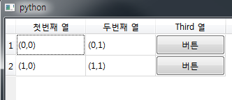- 테이블의 셀에 PushButton, ComboBox,LineEdit 등등 넣기(기본)