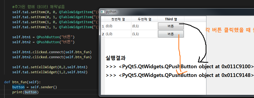 - 테이블의 셀에 PushButton 넣어서 사용하기(응용,심화)