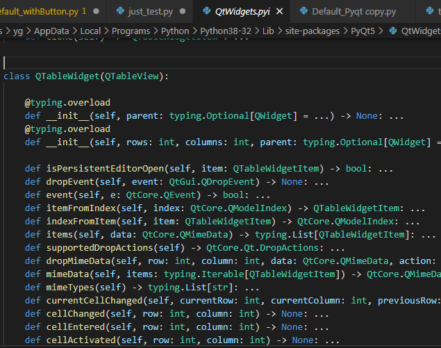 예를 들어 QTableWidget 안에 어떤 메소드들이 정의돼있는지를 보려면