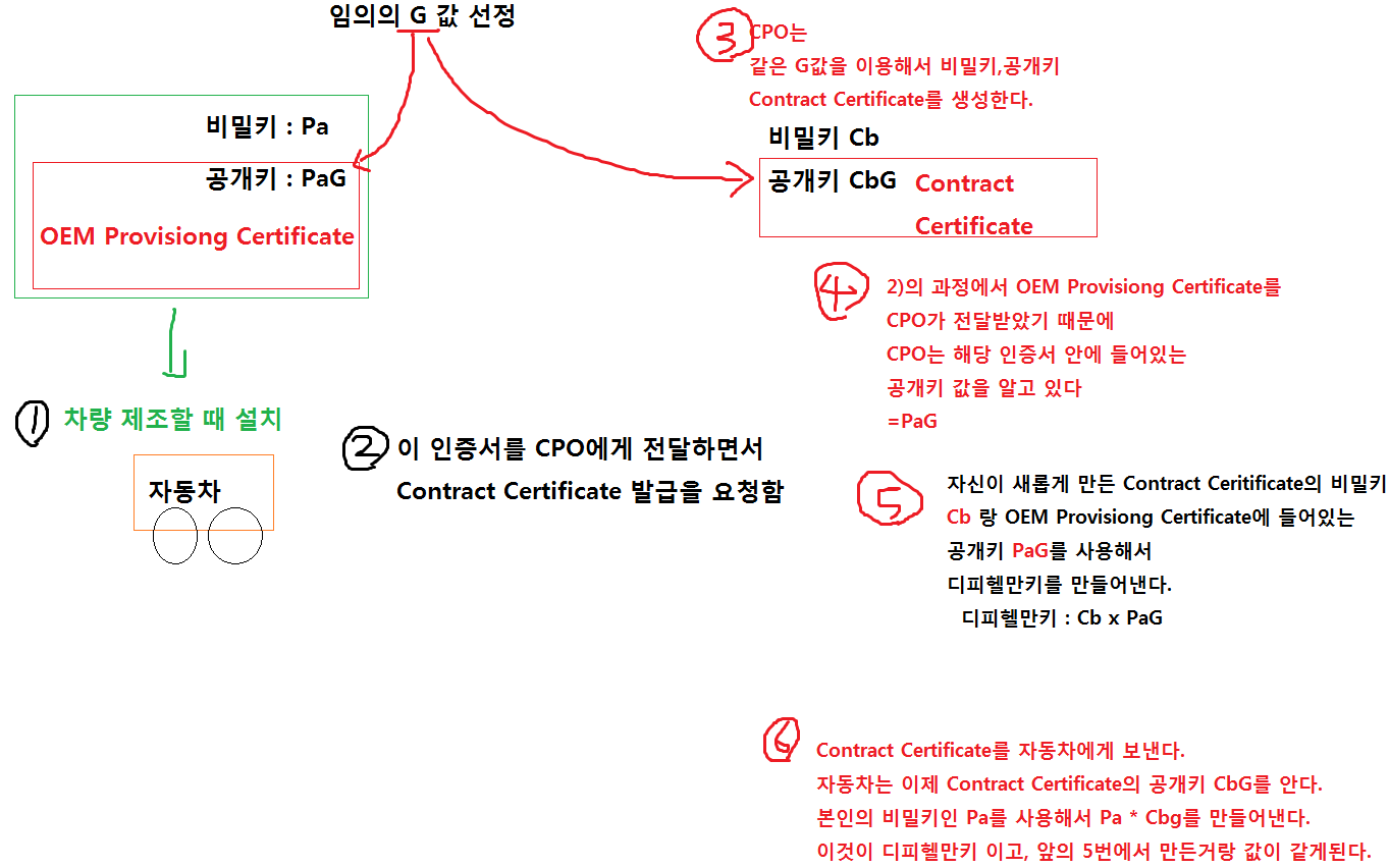 자동차는 자신의 OEM Provisiong Certificate에 매칭되는 비밀키 값을 알고있다.(본인만 알고 있음)