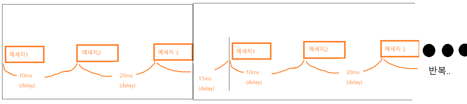 위 그림처럼 45ms 에 한번씩 메세지 3개를 보내는 식으로 계속해서 동작할 것이다.
