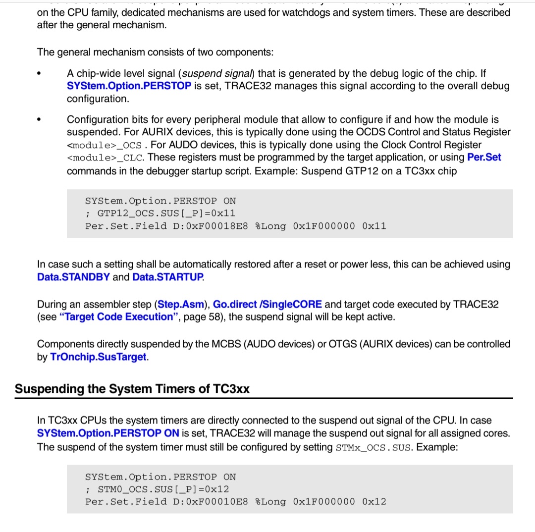 이런 상황을 방지하려면 break point에 멈출 때 STM Timer도 멈춰놓으면 되는데, aurix는 이런 기능을 제공하고 있다.