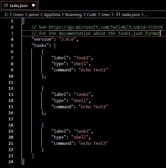 command 영역이 Task 실행했을때 실제 실행되는 커맨드 명령이다.