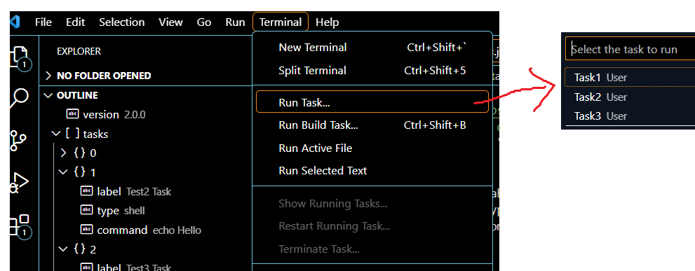 VsCoed 상단에 Task로 등록을 해서 실행시키는 기능이 있다.