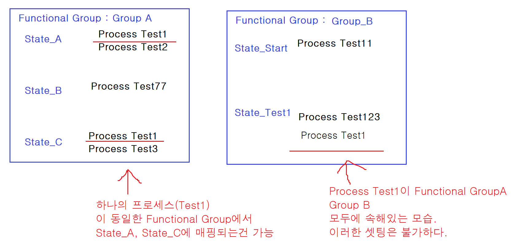 이런식으로 하나의 Functional Group에서 여러개의 State에 하나의 Process가 속하는건 가능하다.