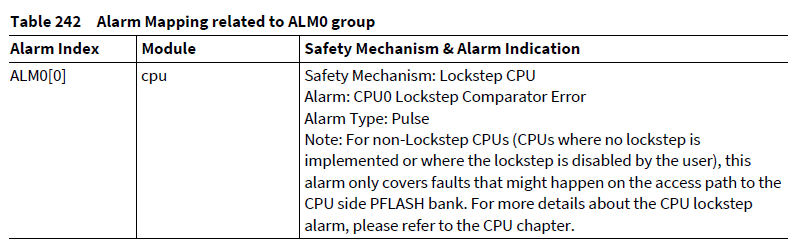 CPU0에 대한 Lockstep 에러 발생시, ALM0[0]이 뜬다.