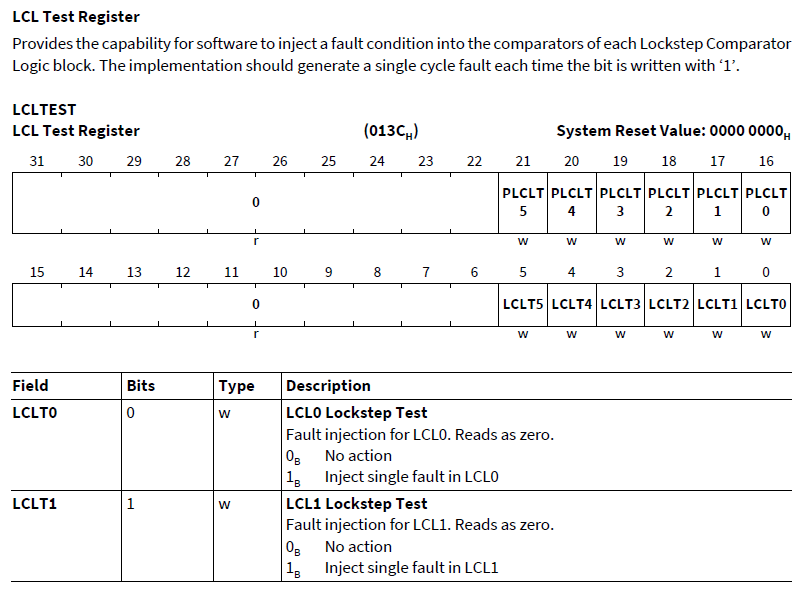 아래 레지스터에 값 1 써서 Lock step 고장 발생시킬 수 있다.