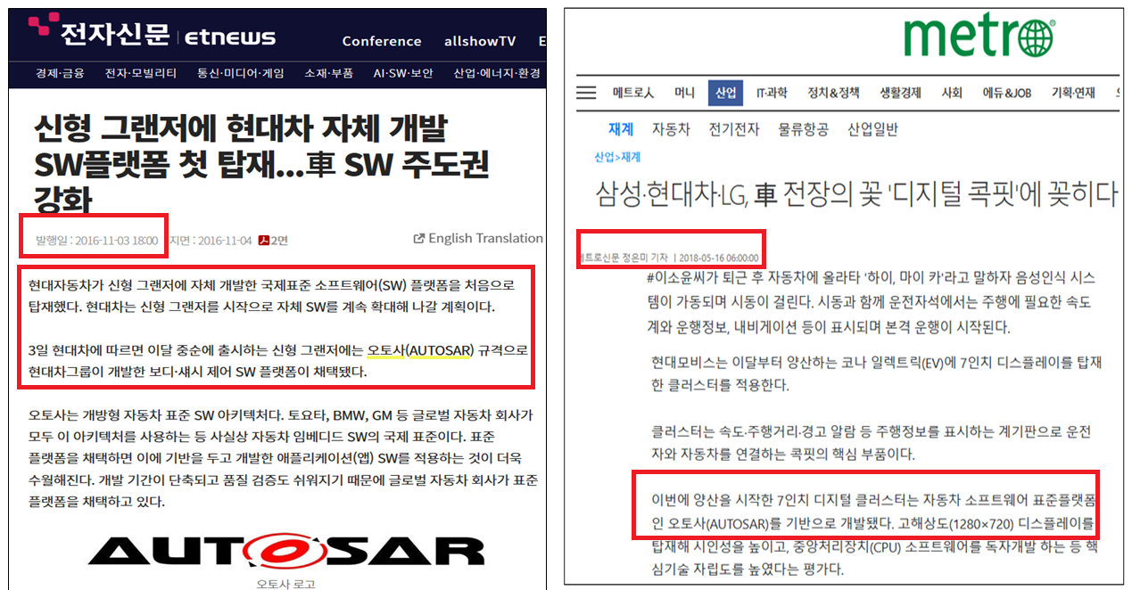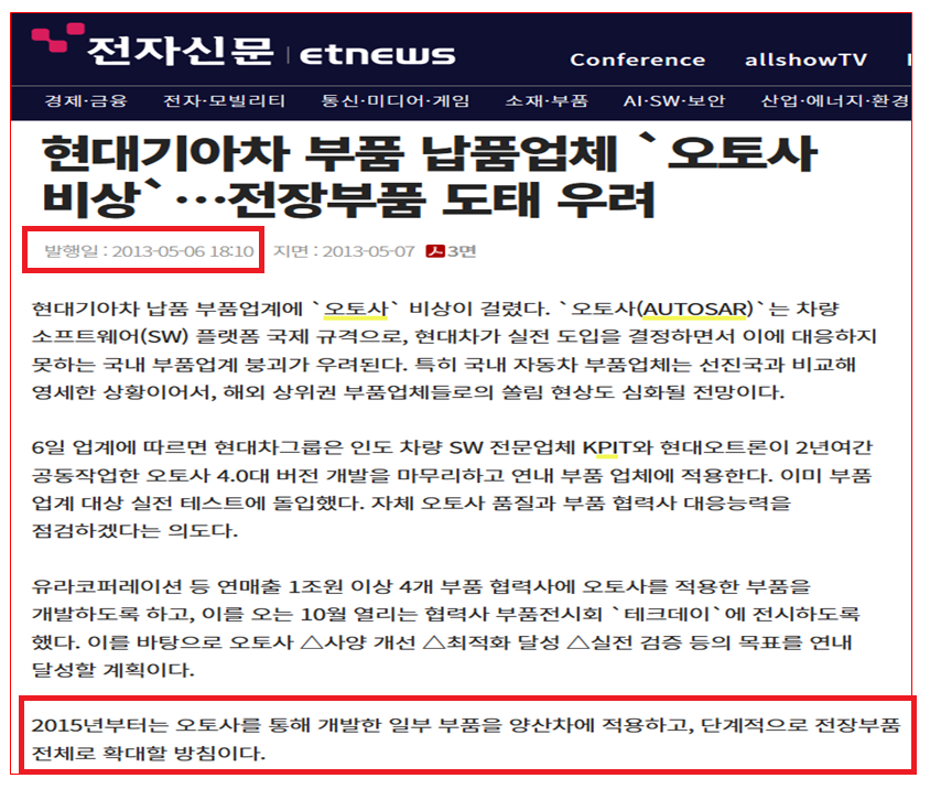 - 2014년~2015년 경 부터 차츰 오토사를 적용하여 SW를 개발하게 됨 (아래 기사는 13년도에 작성된 기사. 현대자동차에서 조금씩 오토사 SW를 적용한다는 내용)