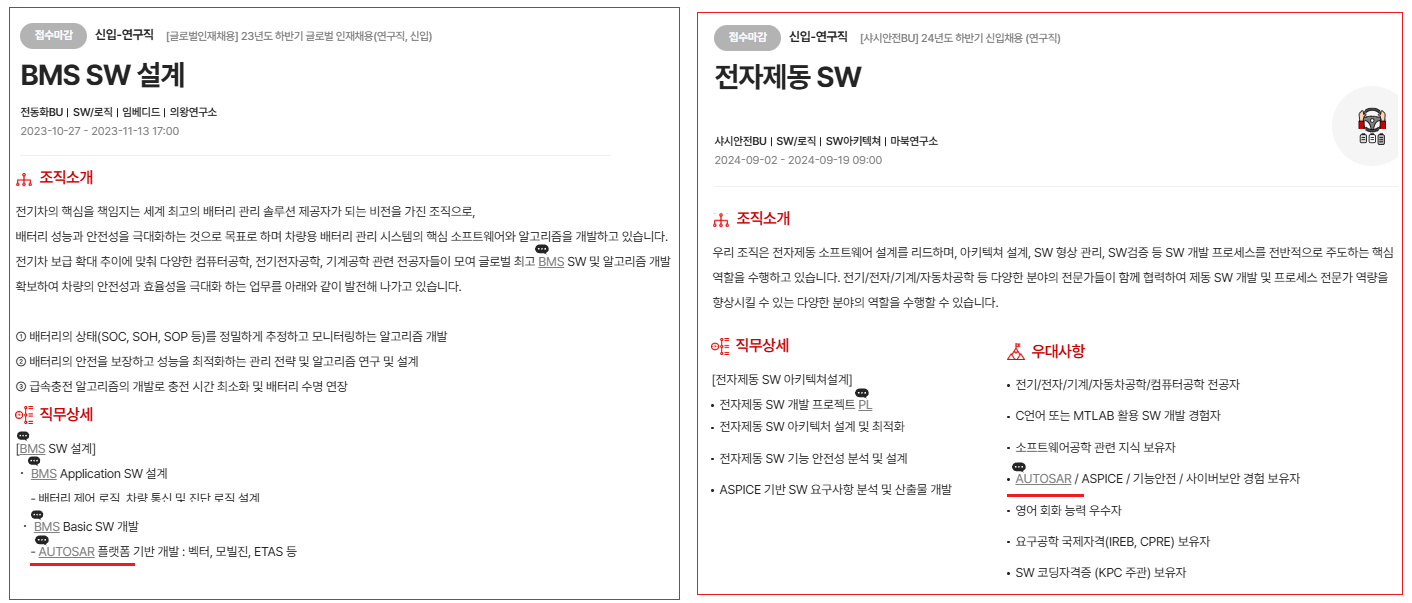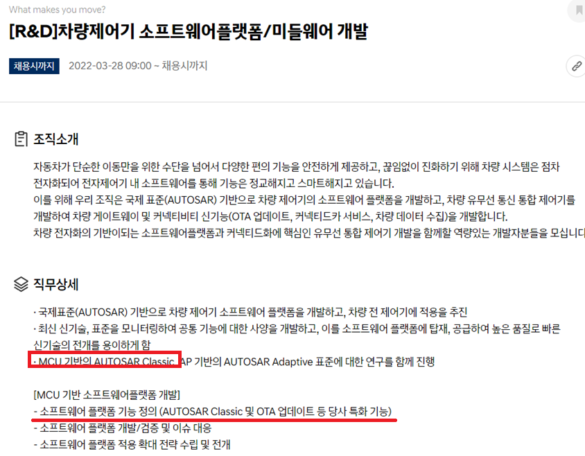 ▶ 한온시스템 차량용 공조제어기 펌웨어 SW 개발자 채용공고 Autosar