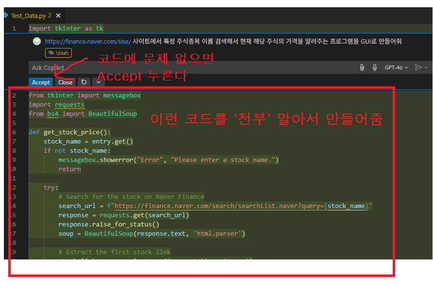 이런 부분만 적당히 메꿔주면 되고, 어지간한 프로그램은 그냥 말만하면 알아서 엄청 잘만들어준다.