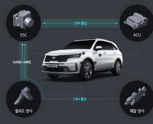 차량 내에 존재하는 여러 제어기, 혹은 센서들은 차량 내부에서 아래 그림과 같이 CAN 통신을 통하여 정보를 주고 받는다.